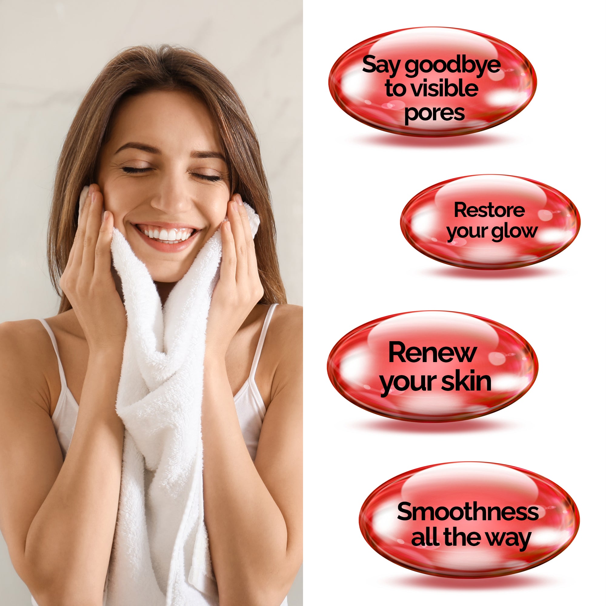 Gently exfoliates to remove dead skin cells and unclog pores, revealing smoother texture and promoting clarity—ideal for acne-prone and uneven skin.